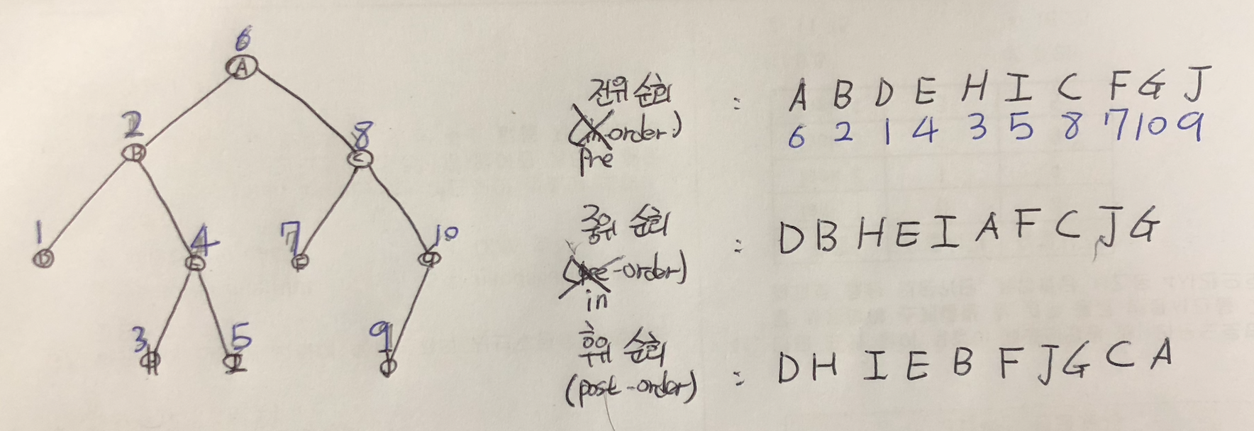 각 순회에 방문 순서를 손으로 적어보았다.